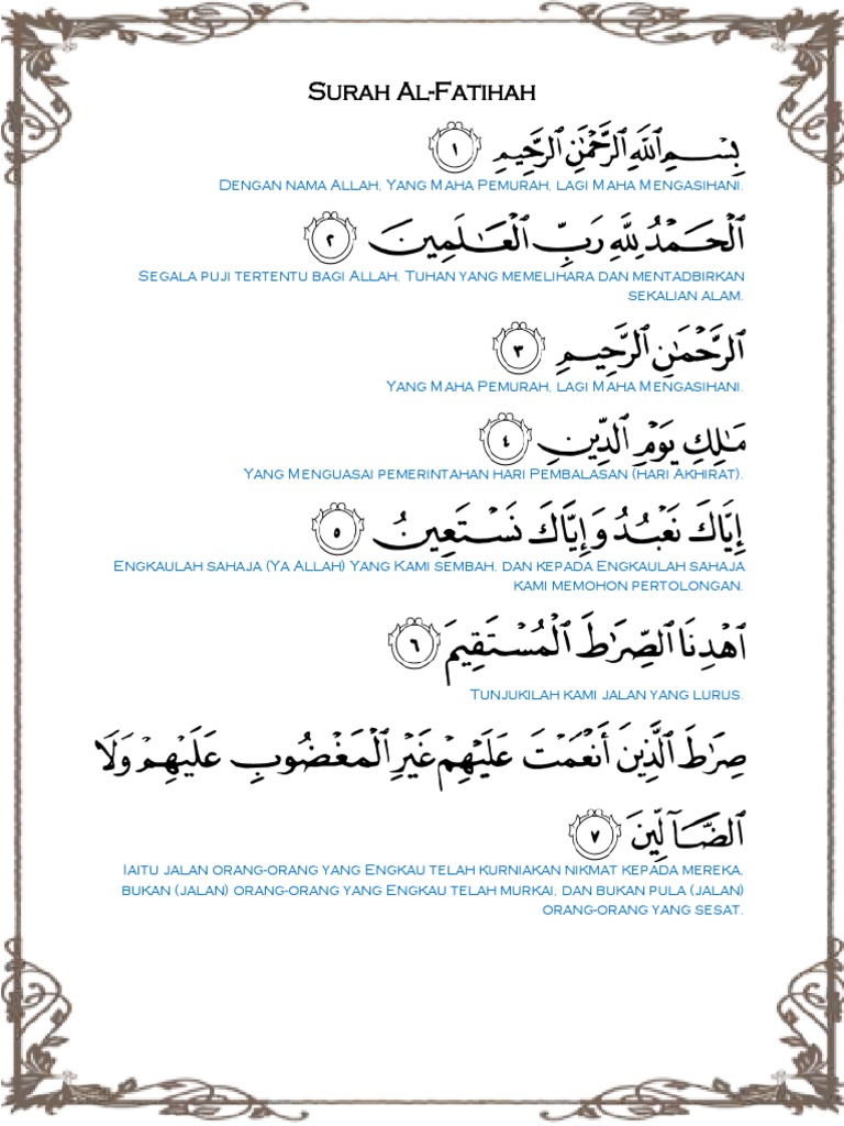 Surah Al Fatihah Rumi Bahasa Melayu The Mizzone